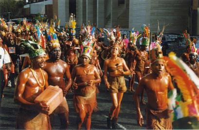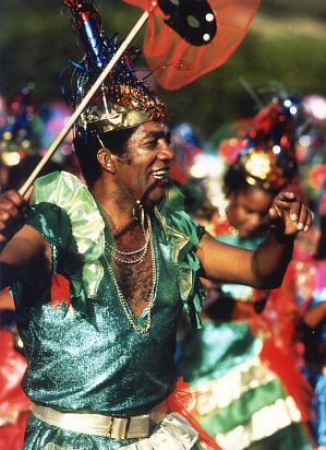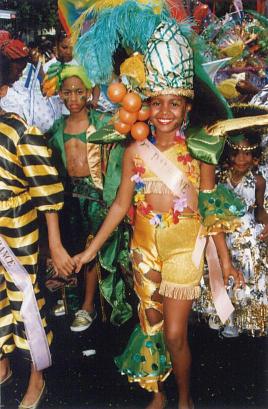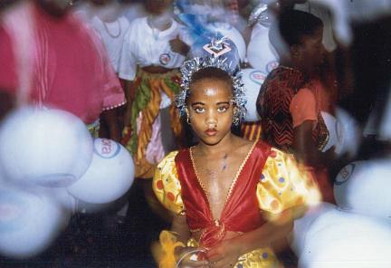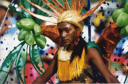 par Alain Cadasse, photographe, Martinique Cette méga fête est donc pour beaucoup l'occasion d'exorciser toutes les frustrations de l'année écoulée et de rassembler les foules sous la même bannière. C'est ainsi que dans la moiteur des après-midi tropicaux des Antilles ou des rues de Rio de Janeiro, le CARNAVAL déverse partout l'euphorie d'un peuple saisit d'une brusque frénésie. Tous les clichés sont là comme un scénario immuable afin que le plaisir soit la seule religion du moment... Soleil, jolies femmes, richesse des costumes, musique bruillante et trépidante, odeurs d'alcools et de plats en tous genres, tout cela laissera aux voyageurs des souvenirs colorés, sucrés, salés, et brulants, jusqu'après le coucher du soleil. Tout paraît si beau à cet instant que l'on en oublie l'âpreté de la vie, et c'est bien là toute la magie du carnaval. Dans le regard de tous ces enfants en costumes de lumière, brille cette flamme que l'on appelle bonheur de vivre, et on se prend à réver que jamais elle ne mourra. Ainsi pour l'enfant que nous demeurons tous il reste une façon de vivre cette ambiance: quoi de plus excitant que de se grimer le visage et de s'affubler des costumes les plus fous?! Ainsi métamorphosé, il ne nous reste plus qu'à parcourir les rues pleines de visages rieurs, moqueurs parfois, et, jusqu'au bout de la nuit, laisser perler des litres de sueurs! Que vive le Carnaval!...